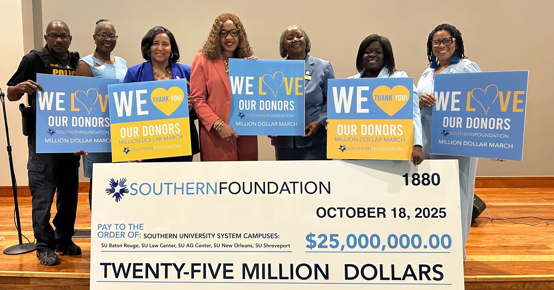 Pictured above is the check that will be presented during the Southern University Homecoming game on Saturday, representing the total amount raised during the SU System Foundation's "Are You In" Campaign across the Southern University system.